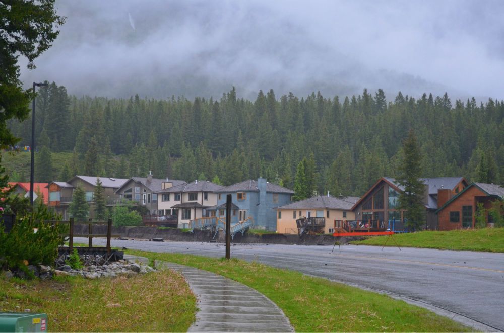 ‘BeFunky_DSC_0307.jpg’ Published June 21, 2013 at 2000 × 1325 in Canmore: State of Emergency Houses along Cougar Creek – look closely, half the road is gone, porches falling ‹ Back